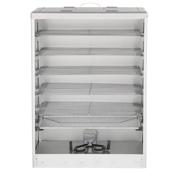 Smokehouse Products Front Load Big Chief Smoker #9894The Big Chief Front Load Electric Smoker is one of our more popular electric smoker and a customer favorite since its introduction shortly after the Little Chief in 1968. The Big Chief smokers are electric and plug into any standard 3-prong 110-120 AC outlet. The Big Chief heating element will heat the smoking chamber to approximately 165 degrees Fahrenheit. The Big Chief is perfect for smoking salmon, trout, other fish, jerky, sausage, fruits, nuts, cheese, turkey, bacon, hams, steaks and really any other types of foods. Why choose a Front Load Style over a Top Load Style Big Chief Smoker? The Front Load Style allows you to have access to each individual cooking grill. If you are cooking a variety of smoked foods (such as jerky and fish at the same time), the Front Load design allows you to remove one grill at a time, or rotate your grills top to bottom as needed. Features of the Front Load Big Chief Smoker:Size: 24-1/2? H x 18? W x 12? D Smokes up to 50 pounds of meat or fish Easy to use! Vented for proper dehydration Safe-UL, CUL, and CSA listed 120 Volt 450 watt heating element operates at approximately 165 degrees Uses standard 110 volt household current Durable, embossed aluminum construction Weight: 22 lbs. The Front Load Big Chief Smoker Includes:Free Recipe Booklet and complete operating instructions Free 1.75 lb. bag of Smokehouse Products Natural Wood Chips Electric cord, 5 Easy-Slide Chrome Plated Cooking Grills, Drip Pan, and Flavor Fuel Pan. Please note: this smoker is not a cooker. Use 3-wire plug and cord with a properly installed ground fault interrupter (GFI) circuit. Use the Big Chief only on a concrete or other non-combustible surface, and use it at least two feet from any combustible materials. The Big Chief should only be used outside. The Big Chief is Guaranteed to be free from manufacturing or component defects for a period of 2 years. Smokehouse Products is located in the beautiful Hood River Valley in the heart of The Columbia River Gorge. The Little Chief electric smoker was introduced in 1968 (under the Luhr Jensen brand) and enjoyed such success that the Mini Chief and Big Chief smokers soon followed. Today Smokehouse Products offers a full line of smoker accessories, including five flavors of chips and chunks, sausage making kits, sausage mixes, seasonings, jerky and dry rub mixes, drying screens, smoker insulation blankets, and replacement parts. Smokehouse Products is committed to supplying our customers with the very best smoker accessories on the market today and will continue to look for ways to enhance your experience using the Big Chief, Little Chief, and Mini Chief smokers. Older Smokers may carry the Luhr Jensen or Totem brand, instead of the current Smokehouse Products logo. This item proudly made in the U.S.A.