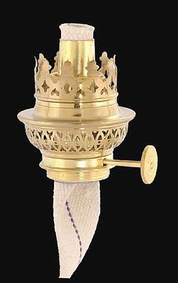This oil lamp burner accepts 1 9/16" base diameter chimneys