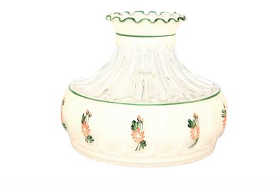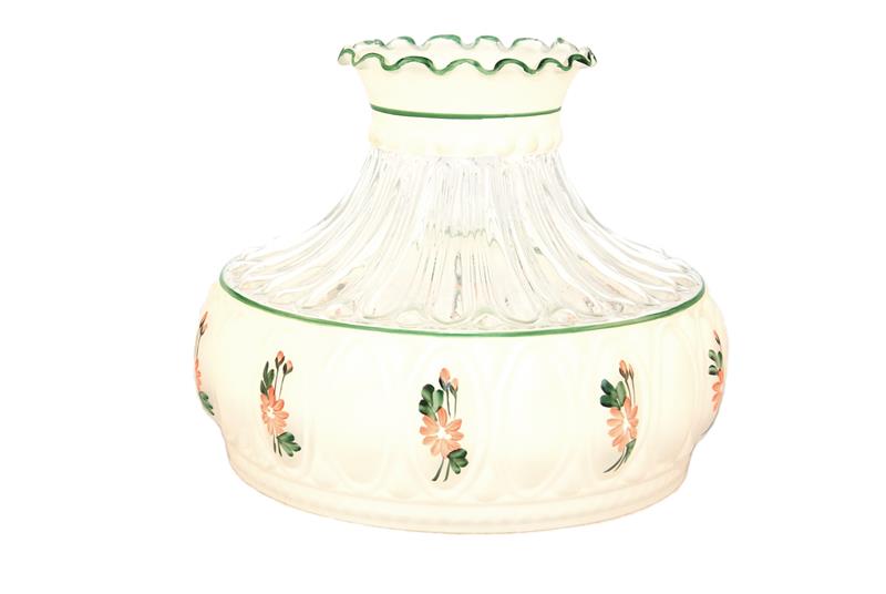Aladdin Lamps 10" Glass Crystal Pink Wildflowers, #M758The 10" Frosted and Clear Glass shade allows for the maximum light out put while still producing a soft warm glow. The hand-painted Wildflower floral pattern features pink flowers with green accents. Stunning when paired with a Chrome, Silver, or Nickel Table Lamps or Clear or Depression Pink Short Lincoln Drapes. For use with Aladdin 10" under-burner shade rings (sold seperately) or any other oil, kerosene, or coal oil lamp with a 10" shade support. www.p65warnings.ca.gov.