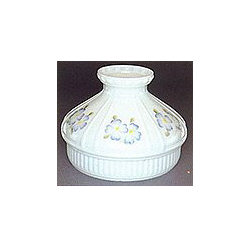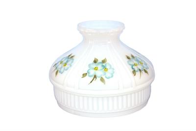 The Model 12 Lamp Shade was originally introduced in 1927 by Aladdin, and this shade has a timeless beauty. Pair this shade with any older or current table lamp! The Dogwood flower blossoms are hand-painted in medium to dark blue tones with a touch of green accents. For use with Aladdin 10" under-burner shade rings (sold seperately). This glass lamp shade will also work with Central Draft style coal or kerosene table lamps with 10" shade support.