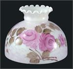 10 inch fitter Opal Glass Student Shade with plain top and hand painted Victorian Roses Scene on a peach and celery tint, 7 inches tall.