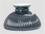 This classic shaped Student Lamp Shade has an added detail of ribs. This 10" base diameter shade is opal white glass with a dark hunter green painted top coat. The effect is a warm and inviting glow on both kerosene and electrified table lamps. Quality American Made glass.