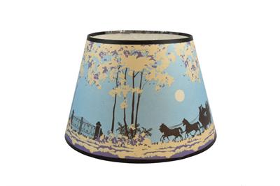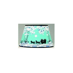 Aladdin Lamps 14" Parchment Coach & Four, Winter colors, #N144-02The Aladdin Lamps Coach and Four Parchment Shade in Winter features tone on tone blues, with white and black accents. Styled after the Aladdin shades of the 1930's and 1940's. The Coach and Four Shade in Winter Blue is a decorative yet economical lamp shade choice. Stunning with Nickel or Chrome Table Lamps or older Clear or Cobalt glass Table Lamps. For use with Aladdin Lamps 14" under-burner tripods (sold seperately) or any oil, coal, or kerosene table lamp with a 14" shade support.