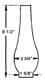 1 1/2 inch by 8 inch with 3 inch bulge Wiena Bulge fits Gem Artic and # 0 Hornet flat wick lamps.