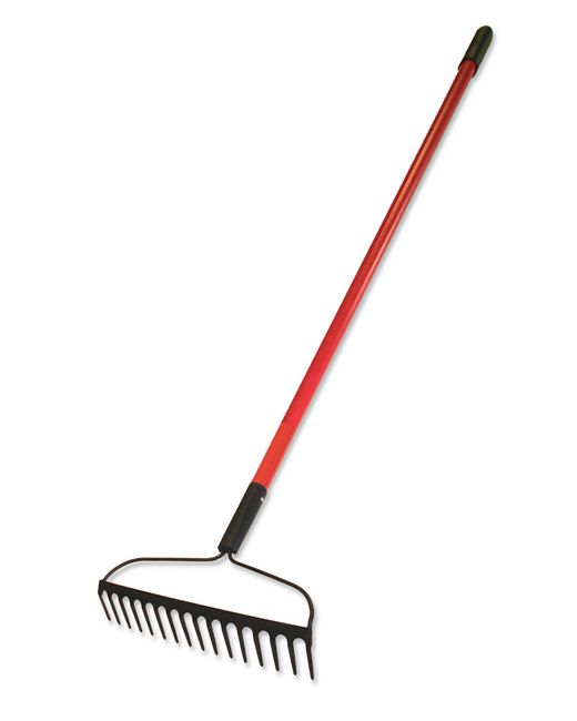 Super Heavy Duty 16 Bow Rake. 12 Gauge, 16 Tines, steel head, fiberglass handle. Head: 16x4, handle: 54.5, tool length: 58. This item proudly made in the U.S.A. Get to know American Made once again! Bully Tools is America's premier manufacturer of American made gardening, lawn, roofing, flooring and agricultural tools for professional contractors as well as consumers. All Bully Tool products are produced in our facility in Steubenville, Ohio. Quality manufacturing ensures that you will purchase a tool that will stand up to tough jobs and give you many years of service. Our commitment to producing domestically directly impacts our region and our country by keeping you, your family and friends working. Your commitment to purchasing American made products will help keep America growing strong for many generations.
