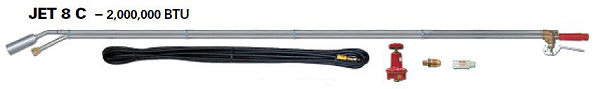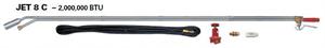 Jet Torches maintain a pilot flame and are triggered to full flame with a convenient squeeze valve at the handle. Both feature a plastic grip and are easy to operate. JET 8 C and JET 4 C come with a 25 hose while the JET 410 C is packaged with a 10 hose. JET 8 Torch Specifications: Maximum Capacity 2,000,000 BTU/hr Normal Operating Pressure 80 P.S.I. Operating Pressure Range 30 P.S.I. - Tank Press Max Flame Length 6 Approximate Flame Temperature 2050?F Maximum Fuel Consumption 80 lbs/hr Fuel Inlet 1/4 NPT Overall Torch Length 84 If ordering this unit as a replacement for your existing torch setup, please be prepared to provide your SERIAL NUMBER and verify it was manufactured by FLAME ENGINEERING. We do not sell these parts as substitutes for any other manufacturers products. Ships in 2 boxes