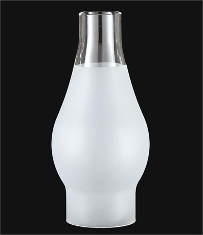 This chimney features frosting from the base to 3/4 of the way up the chimney. The frosted glass diffuses the light produced by the lamp, and produces a nice warm glow. This frosted chimney is also a good pick for electrified lamps, making the light bulb less noticeable.