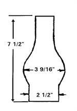 2 1/2 inch by 7 1/2 inch height with 3 1/2 inch bulge, clear Pearl Lotus 2 1/2" clear crimp top chimney, fits #1 size burners and 2 5/8 inch galleries.