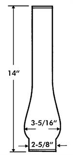 2 5/8 inch by 13 inch with 2 7/8 inch bulge, clear hand made chimney fits Rayo and CD burners. Designed for use with 10 inch and 11 inch ball shades.
