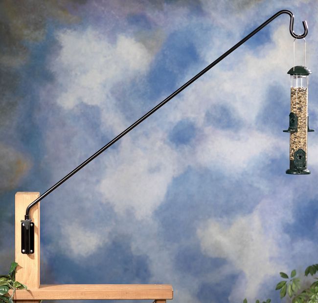 Hang your bird feeders in style with the Green Esteem Extended Reach Wall Bracket. Equipped with a wall-mounted bracket, this 36 inch long arm and sturdy bracket are ideal for all bird feeders. The sleek and classic design coupled with the ability to position these treasures in the perfect viewing spot make the Extended Reach Wall Bracket a treat for every home. Simply slide the arm into the wall-mounted bracket and using the easy to grasp, adjustable knob, turn until tightened and secure. Loosen the adjustable knob to swing the arm in a full circular motion for watering or other maintenance. The durable weather-resistant finish will maintain its black color and quality season after season. The bracket is easy to install using mounting screws. Made in the USA. 1/2 inch diameter cold rolled steel which is black; polyester powder coated finish.