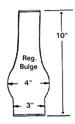3 inch by 10 inch height and 4 inch bulge, clear chimney for #2 burners and 3" galleries