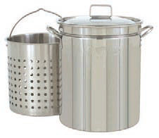 Stainless Steel Stockpot 13.5"d x 17.25"h 0.8 mm/20 Gauge Perforated Steam/Boil Basket Vented Lid Basket sets 3" above bottom for steaming Size: 15.25" x 15.25" x 18" Weight: 16.48
