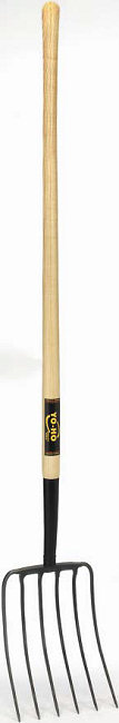 6-Tine Forged Manure Fork, 48" wood handle, #26402