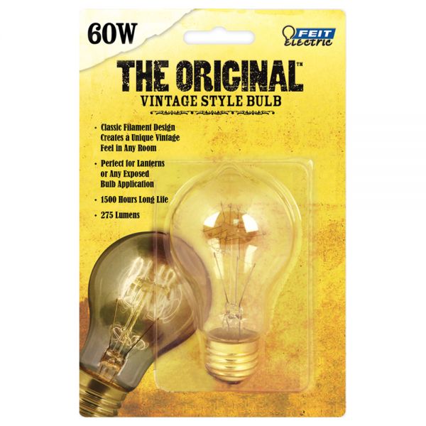 This vintage shaped incandescent light bulb is perfect for industrial style pendant lights and other lighting fixtures with exposed bulb applications. A19 bulb, 60 watts, 275 Lumens.
