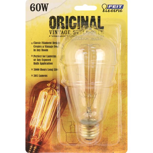 This vintage shaped incandescent light bulb is perfect for industrial style pendant lights and other lighting fixtures with exposed bulb applications. ST19 - Teardrop shape vintage bulb, 60 watts, 120 volts, 305 Lumes.