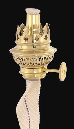 Our #6 Kosmos Lamp Burner is made of high quality, solid brass oil burner made to fit most French banquet lamps with 15/16" I.D. collars. The #6 Kosmos Burner comes with large double stitched wick, a generous-sized turn knob, and a super rugged wick raising mechanism. This oil lamp burner accepts 1 5/16" base diameter chimneys and is compatible with the parts offered below.