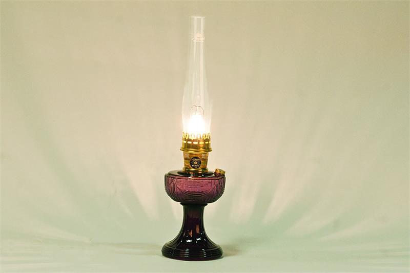 Aladdin Lamps Amethyst Purple Short Lincoln Drape Lamp, Brass Hardware #100007231 or C6183B (Less Shade)Short Lincoln Drape Lamp in purple Amethyst is the newest color of Short Lincoln Drape from Aladdin. The Short Lincoln Drape lamp has been a staple in the Aladdin line since its introduction in 1939! This lamp offers the best of form, function, and economy. The glass bowl of this Short Lincoln Drape Lamp allows for you to easily monitor the fuel level.