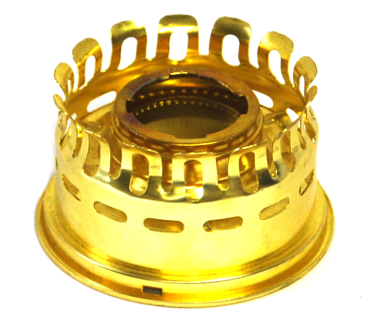 Aladdin Lamps Heel-less Gallery, Brass Plated Brass #N239ABThe Aladdin Heel-less Gallery (top) is a common replacement part for the Aladdin burner. Galleries can get dented, damaged, or go missing from the lamp all together. The Heel-less Gallery fits on Aladdin Lamp burners, Models 6, 7, 8, 9, 10, 11, 12, A, B, (some Model C's but not all), 21, 21C, 23, and 23A. This gallery (top) is designed for use with Aladdin Heel-less Chimneys #R910. Use the #N239AB Heel-less Gallery to convert any Aladdin Lox-On Burner to Heel-less. Why convert my lamp from Lox-On to Heel-less?Converting your Aladdin Lamp to Heel-less saves on chimney breaks! The Lox-On Chimneys can be accidentally over tightened, and this can cause the chimney to break or crack when the lamp is lit. Because the Heel-less Style uses a friction fit (fingers) around the gallery, the chimneys can expand a bit more freely and crack less often. The "fingers" of the gallery can easily be adjusted to fit your chimney. (All Aladdin chimneys are made of hand-blown glass and vary slightly.) The Heel-less Gallery is also referred to as a "Slip" Style Gallery, due to the fact that the smooth base of the Heel-less Chimney simply slips into the gallery, rather than the twist and lock design of the Lox-On Chimney.