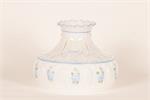 Hand-painted blue roses with green accents on a frosted and clear shade.