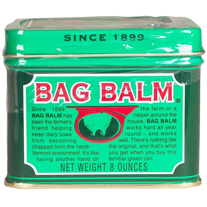 From Lyndonville, Vermont, the original Bag Balm ointment salve. For pets and people, Bag Balm heals and soothes irritated and cracked skin. 1 ounce salve, comes in classic green tin.