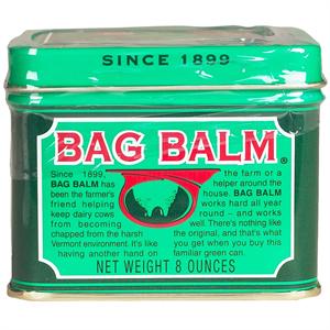 The Vermont Original since 1899, Bag Balm is the original moisturizing ointment salve for chapped and irritated skin. Apply Bag Balm to cracked pads, dry elbows, cuts, abrasions, and skin irritations. Bag Balm contains 0.3% 8-Hydrozyguinoline sulfate for an antiseptic approach to treating abrasions and wounds. Bag Balm has a petrolatum and lanolin base to keep superficial tissue moist and soft. Bag Balm goes on fast and stays on. Bag Balm was originally created in Vermont to treat the udder area after milking cows. This time-test ointment is now being used on pets and people for chapped skin and minor skin irritations.Bag Balm is an Alcohol-free formula salve ointment..