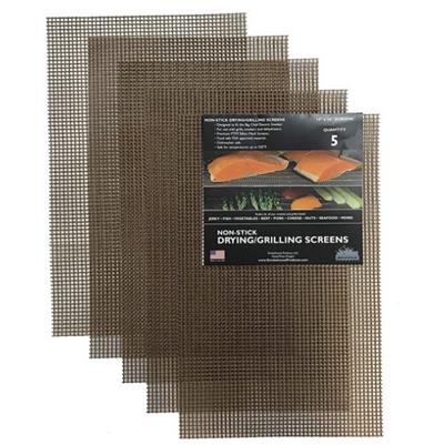 The non-stick drying and grilling screens are made of premium PTFE Teflon and are food safe with FDA approval. Simply place your food on the screens on the grills or grates of your smoker, grill or dehydrator. They eliminate your food from falling through the grates, and best of all, prevents your food from sticking to the grill grates.