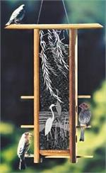 Features double etched glass designed with graceful herons and willow branches. Has 6 feeding ports, 16" Tall