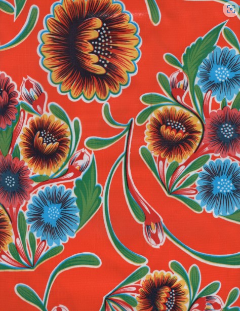 Blooms on Orange Oil Cloth, YardageOilcloth has been around for over a century and when it comes to making a bold color statement anywhere in your home. Oilcloth is a long-lasting, sturdy product that comes in vibrant colors. The oilcloth of yesteryear was resin-coated vinyl and the finish sometimes cracked or flaked. The new version is made of hi-tech plastic that won't crack but has the same colorful shine. Oilcloth has a mesh backing, which means it can really hold a stitch. It can be used for anything that needs to be durable and colorful--tablecloths, upholstered dining room chairs, curtains, bibs, lampshades, tissue boxes, outdoor chairs, etc. Your only limited by your imagination! Oil Cloth measures 48" wide & a full bolt equals 12 continuous yards (36 feet) Don't see the pattern or color you want? Please let us know and we will order it for you!Download a sewing pattern with complete instructions that you can print out at home to make an adorable bib with these oil cloth materials courtesy of Oilcloth.com. Click Here