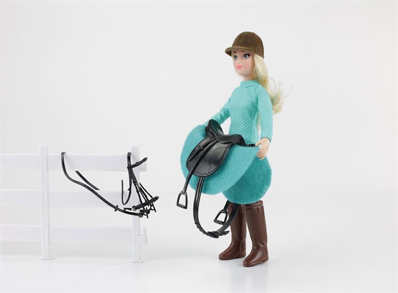 Breyer Horses Classics Size Heather, Casual English Rider Doll #62022 Set includes: 6" Articulated English Rider Doll, Black Faux Leather English Saddle, Black Faux Leather English Bridle with Reins, and turquoise English Saddle Pad.