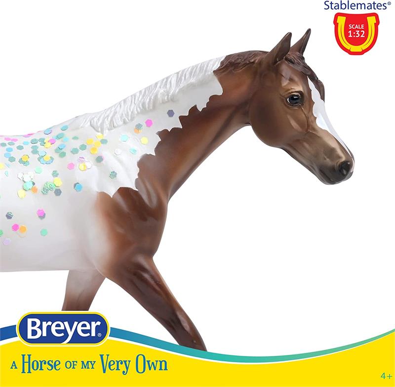 Just when you think horses couldn’t get any sweeter, here’s Neapolitan! Decorated like your favorite ice cream treat, her chocolatey brown coat transitions to creamy vanilla, before finishing with a strawberry swish of her tail. Of course, no ice cream dessert is complete without whipped cream and colorful sprinkles, which cover Neapolitan’s topline. A subtle pearly finish completes this decadent dessert.