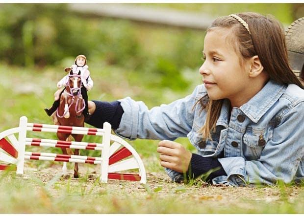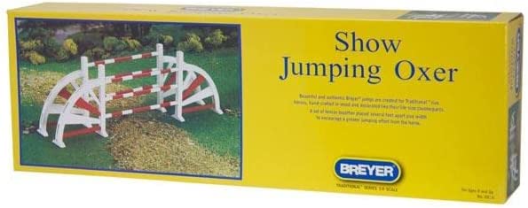 Every Show jumping competition needs an oxer! An oxer, a set of fences placed several feet apart give Width to a jump, and encourage greater effort from the horse. Beautifully painted in red and white, This wood jump is made for Breyer Traditional scale (1: 9) horses. Set includes 2 painted fences – put them together to make an oxer, or place them separately for double the jumping fun! Measures 14.75"L x 5.5"H.