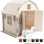 Build, paint, and play! This fun, new playset features an easy-to-build, 11-piece wood barn that requires no tools or glue! Just slide the tabs into the slots and you've got yourself a barn.