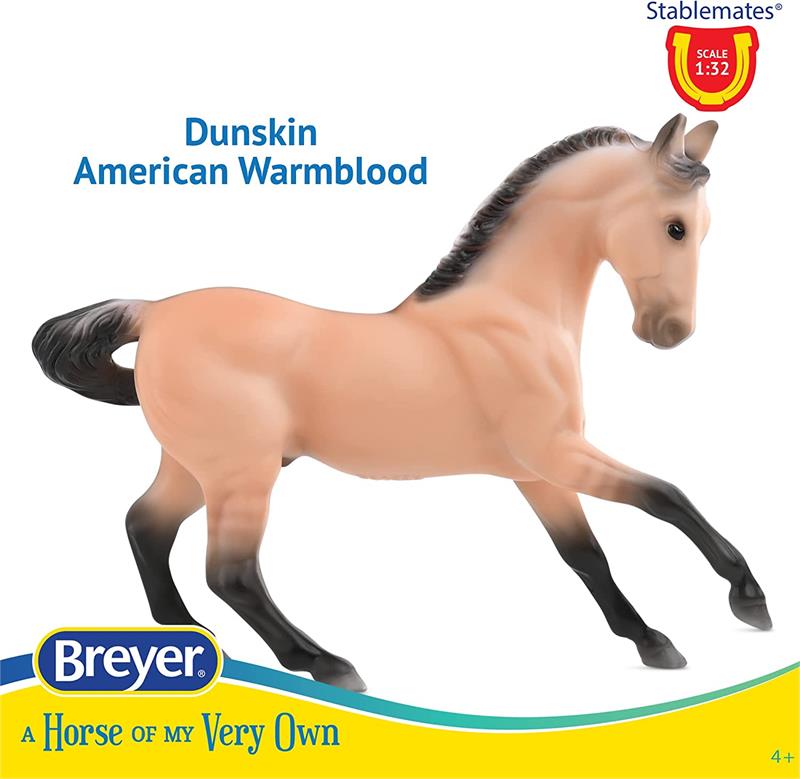 This new 4-piece set includes a bay roan Morgan Cross, a dunskin American Warmblood, a black Mustang, and a dapple grey Hanoverian.