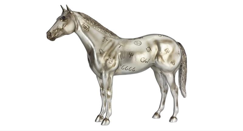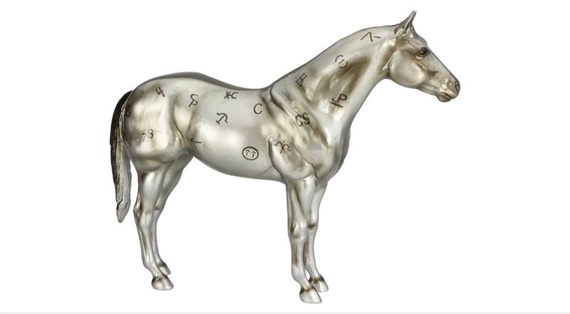 This special anniversary model was created on the Ideal American Quarter Horse sculpture, and features a unique metallic silver coloring that gives it a trophy-like appearance. The Best Remuda Award honors the ranches that bred quality horses that were athletic, versatile, sound and good-minded – the foundation stock of this highly popular breed. A tribute to the ranches and working horses that helped build the AQHA into the association it is today, each brand featured on the model’s coat represents an AQHA Best Remuda Award winner. This special-edition model has “AQHA 85th Anniversary” on its belly.