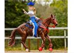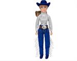 Cassidy is ready for the show ring in her sparkly white shirt, blue pants with fringe, belt with a big silver buckle, and her cowboy hat and boots. This fully-articulated rider figure stands 8" tall and is ready to complete your Breyer farm setup.