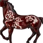 Emerging from the darkness into the moonlight, Spectre is a hauntingly beautiful sight to behold. With an eerie coat designed by artist Lauren Hoeffer, this animated stallion is covered in ghastly ghosts. With their mouths parted in silent screams.