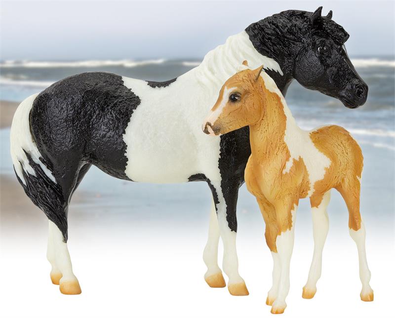 The sweet pair of the Phantom and Misty is presented on the original Misty and Stormy sculptures created by artist Chris Hess in the 1970s. To make this set even more special, it’s the first time Breyer has released models of the Phantom and of Misty as a foal! Traditional | 1:9 scale | Ages 8+