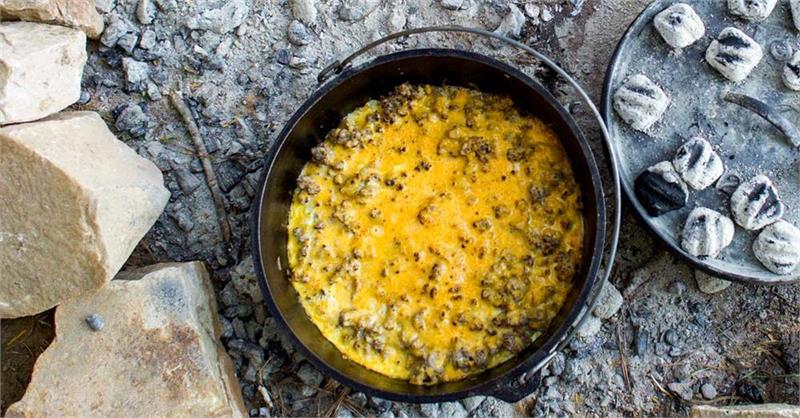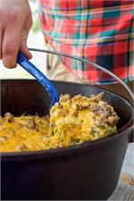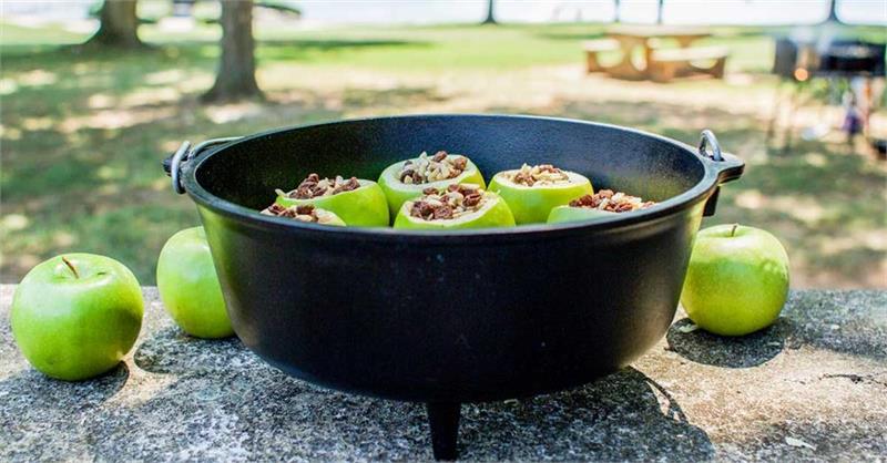 10" diameter, 3 1/2" depth, 4 quart capacity, and weighs 14 pounds. The Lodge portable “camp stove” is the pot that does it all. The flanged lid holds hot coals and inverts for use as a griddle. The integral legs allow the oven to sit perfectly over hot coals. The bail handle is for use with a tripod. Includes Camp Dutch Oven Cooking 101 cookbook. Lodge Camp Dutch Ovens:From colonial hearth fires, to the campfires of Lewis and Clark, cast iron Camp Dutch Ovens fed our nation’s progression from the original 13 colonies to the far reaches of the American West. Each one of Lodge Cast Iron's Camp Dutch Ovens feature a flanged lid to hold coals or briquettes. Three "tripod" legs on the bottom of the ducth oven allow for the pot to be put directly into the campfire. The bail style handle can be used with a tripod. The Camp Dutch Oven's lid can be flipped and be used as a griddle. About Lodge Manufacturing, the largest USA based Cast Iron Cookware maker: