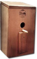 Attracts bluebirds, finches, and tree swallows. Discourages starlings. 13" Tall, Interior width 5-3/4x5-3/4", height to hole 6-3/4", Hole size 1-1/2".