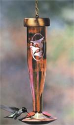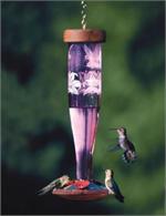 From our paradise collection, this feeder features amethyst colored glass with an original hand-etched design of hummingbirds and tiger lilies.