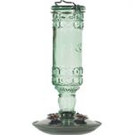 Features an antique glass bottle design with 4 decorative flower feeding ports. Metal hanger attached for ease of hanging. 10 Oz. nectar capacity.