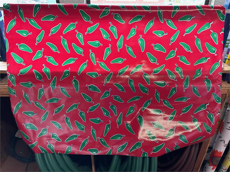 Chiles Green on Red Oil Cloth, Full BoltOilcloth has been around for over a century and when it comes to making a bold color statement anywhere in your home.