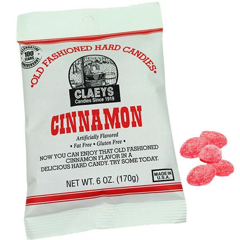 Claey's Cinnamon Candy 6 oz. bag fiery, yet sweet Since 1919, Claey's has been making traditional hard sanded candies. Each batch is made to the same recipe as the originals. Claey's Cinnamon is fiery enought for any Cinnamon lover! Wonderfully flavorful. Check out our complete selection of: Claey's Candy