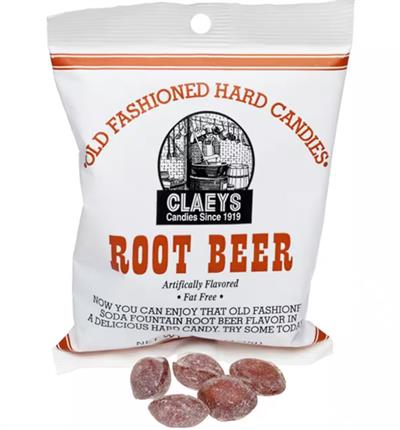 Claey's Root Beer Candy 6 oz. bag traditional rich and creamy Since 1919, Claey's has been making traditional hard sanded candies. Each batch is made to the same recipe as the originals. Rich and creamy, just like a tall, cold glass of homemade root beer. Wonderfully flavorful. Check out our complete selection of: Claey's Candy
