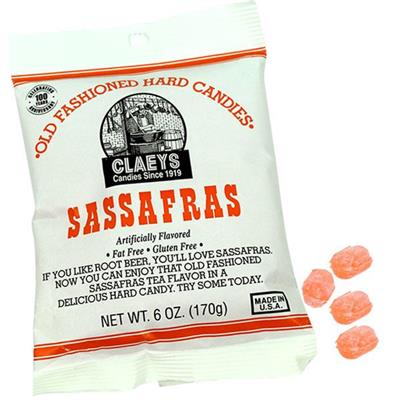 Claey's Sassafrass Sanded Hard Candy, 6 oz. bag similar to item shown Since 1919, Claey's has been making traditional hard sanded candies. Each batch is made to the same recipe as the originals. Rich and creamy, just like a tall, cold glass of homemade root beer. Wonderfully flavorful. Check out our complete selection of: Claey's Candy