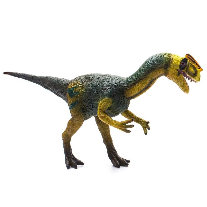 This beautifully sculpted, collectible figure from our Prehistoric Life Collection measures 4.3''L x 3.5''H. The first specimens of the Dilophosaurus were found in Arizona in 1942. In 1964, another specimen was found in the same area.