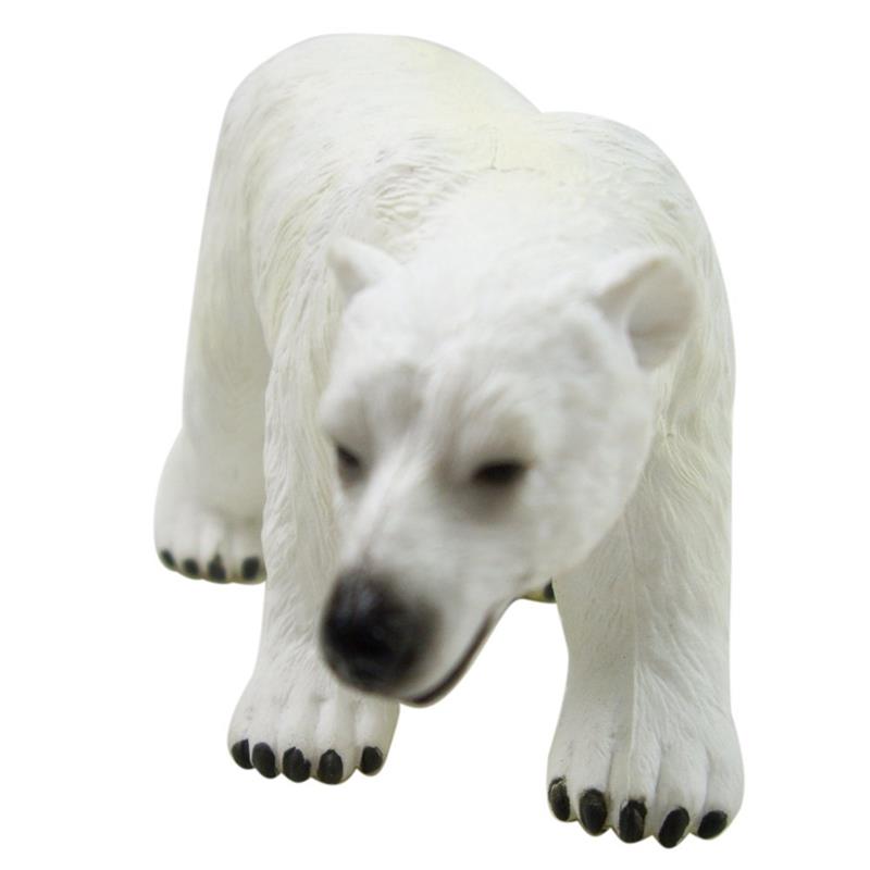 Polar bear fur consists of a layer of dense underfur and an outer layer of guard hairs, which appear white to tan but are actually transparent. This toy figurine measures: 11cm X 6cm. This true to life, scaled-down Polar Bear is perfect for use in dioramas, pretend arctic scenes, or other displays.