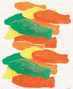 Ingredients: Sugar, Invert Sugar, Corn Syrup, Modified Corn Starch, Citric Acid, White Mineral Oil, Natural and Artificial Flavors, Carnauba Wax, Red 40, Yellow 6, Yellow 5 and Blue 1. Swedish Fish are a fat free food.
