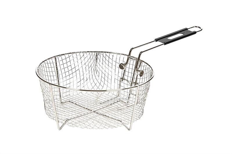 Deep fry favorite foods in Lodge commercial grade baskets that fit in Lodge Dutch Ovens. Easy to store folding handle & drain hook. Constructed of Nickel Plated Steel. For 9 Quart Dutch ovens.