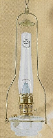 Aladdin Lamps Deluxe Glass Hanging Lamp, Clear (less shade), #BH715This lamp is available with Kerosene or Electric Burner. Please use the pull down menu to make your selection. Our Deluxe Glass Hanging Lamp brings a disctinctive touch of country charm to any home. With its stylish stippled-finish glass bowl, solid brass frame, this lamp fits easily into any early American decor. The disctinctive tilt frame hanger makes it easy to remove for refilling. The warm, friendly glow from this Aladdin lamp will provide countless nighttime hoursof tranquillity, reminiscent of a more peaceful, simple time. Lamp can double as a shelf or table lamp. 24" overall height (plus 18" brass chain included), 7" lamp base diameter, 1 quart kerosene capacity. This lamp needs a minimum clearance of 12" from the top of the chimney to the ceiling. About Model 23 Aladdin Kerosene Mantle Lamps:The Model 23 Aladdin Lamp produces 60 watts of bright, white light without smoke or odor. The unique round wick and mantle combination of the burner provides you with a steady, bright white light making it an ideal choice for power outages or off the grid living. The Aladdin Lamp using K-1 kerosene, which is economical and easy to find. A quart of kerosene will provide you with approximately 12 hours of light. The Model 23 burner also produces around 2,000 BTUs per hour, providing heat as well. Choosing Electric or Kerosene for your Aladdin LampWe offer all of our Aladdin Lamps with the option of electric or kerosene. The kerosene burner produces a wonderful, safe, bright white light for non-electric situations such as power outages. The Aladdin Lamps have been in use since 1908. Electric Burners (also referred to as converters) use the same burner body as the kerosene burners to acheive the same look as kerosene. The design of the electric burner keeps all of the wiring within the burner and a turn-knob replaces the wick raiser. The gallery also has the same look, but is not interchangeable with the kerosene gallery. The Aladdin Chimney also fits the electric burner. The electric burner is designed so you can keep your lamp font (base) full of kerosene if you choose, and have it ready for power outages, while using your lamp on a daily basis as an electric lamp.  WARNING Using this product can expose you to chemicals including lead which is known to the state of California to cause cancer, and carbon monoxide, which is known to the state of California to cause developmental toxicity. For more information go to www.p65warnings.ca.gov.
